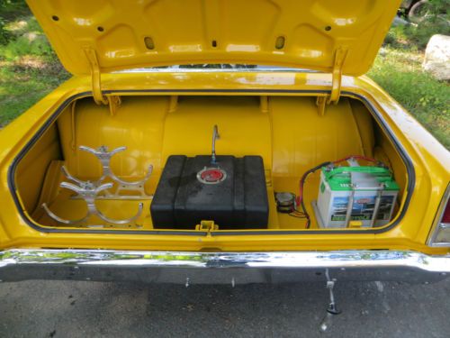frame off restoration heidts front end ford 9 inch rear with wilwood disc brakes strange axles 4:11 gears power glide with trans brake auto meter gauges msd 6al ignition box coil and distibuter 950 holley proform carb bowtie block and intake borla mufflers flaming river tilt wheel collum 4 link rear suspension cash or money order must supply own delivery