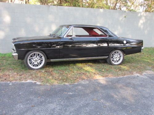 WHAT WE HAVE HERE IS A PRO TOURING 1966 CHEVY II NOVA HAS A 383 STROKER PUMP GAS MOTOR MAKE 500 HP CAR IS FAST HAS 350 TRANS WITH SHIFT KIT AND STALL CONVERTER HAS STOCK BRAKES WITH STINLESS LINES AND STOCK 10 BOLT WITH LEAF SPRING WITH SLAPPER BAR'S WITH AIR SHOCKS CAR HAS FULL 6AL MSD IGINTION 750 POLISH HOLLY CAB HOOKER COMP HEADER'S CAR IS REAL NICE IF YOU NEED ANY OTHER INFO CALL ME ANY TIME AFTER 5:30 PM FL TIME @ 352-351-4350 OR EMAIL ME AND I WILL SEND MORE PICS LOOKING TO UPLOAD A VIDEO SOON --------------------- THE CAR TOOK TOP 50 PEOPLE'S CHOICE AT THIS YEAR'S OCALA PUMPLIN RUN CAR SHOW THERE WHERE OVER 600 CAR'S AND TRUCK'S THERE CAR IS GARAGE KEPT IT IS BASECOAT CLEARCOAT PAINT.