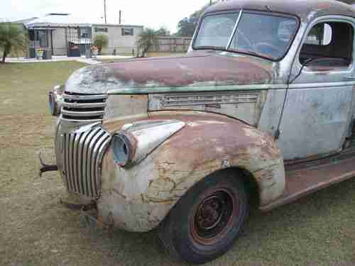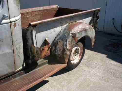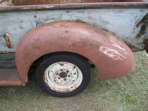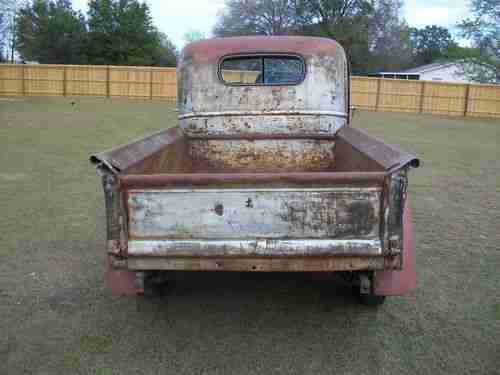 DO TO A NON PAYING BIDDER THAT HIT THE BUY IT NOW AND DID NOT PAY FOR THE TRUCK, I HAD TO RELIST IT AGANE, THIS IS NOT A GAME,,,,,,, THE FIRST PICS IS WITH THE WHITE WALLS TIRES ON AND HUB CAPS GO`S WITH THE TRUCK, WHAT I HAVE HERE IS A VERY SOLID TRUCK IT HAS A 216 CLY, NOT RUNNING, I HAVE A 235 6 CLY, I WAS TOLD IT WAS REBULT WITH AROUND 5,000 MILES ON IT, ITS VERY CLEAN INSIDE AND RUNS GOOD FOR $500.00 ,IF SOME WANTS IT. THE CAB IS SOLID, ABOVE THE WINDSHIELD IS SOLID, WINDSHIELD FRAME IS SOLID, THE BELT LINE IS SOLID AND STRAIGHT,RIGHT DOOR IS SOLID AT THE BOTTOM , LITTLE RUST ON THE FRONT OUT SIDE, LEFT DOOR IS THE SAME, RUNNING BOARDS ARE SOLID NO RUST BUT WILL NEED STRAIGHTING, REAR FENDERS NEAR MINT, VERY STRAIGHT . I WOULD REPLACE THE BED SIDES FOR ALL THEY COST. FRONT FENDERS ARE SOLID WITH SOME DENTS AND SOME CRACKS, NICE HOOD,VERY NICE GRILLE, NO SEAT, CLEAR FL TITLE IN MY NAME, THIS IS SOLID TRUCK FOR THE MONEY, I AM GOING UP TO PA IN MAY, SO I CAN DELIVER IT ON THE WAY UP, MUST BE PAID IN FULL IN 7 DAYS,,, CALL 813 441 4192 THANKS TERRY