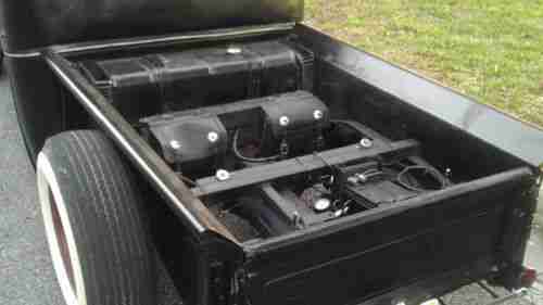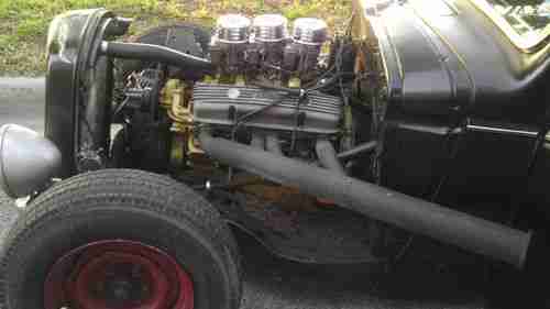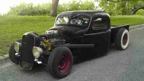 This 1947 Chevrolet truck will satisfy all you Rat Rod cravings. This Rat Rod is chopped, channelled, and lowered with a Easy Street Air ride front suspension, and has rear air shocks with an air pump and tank. Can also be raised and lowered 4 inches, adjustable. Could go over raised center medium, or lower to dazzle your friends, and was built to drive. It is on a modern 1996 GM chassis for good control of the road, and has a good running 305 cubic inch small block with a two barrel intake and two extra added two barrel carburetors to give it that "six pack" look. The Lakes style exhaust pipes have baffles, and can be adjusted to be really quiet or open headers. It has a turbo 350 automatic transmission, and has a Walker radiator. Has been driven daily for two years, and drove to the 2012 Turkey Rod-run at Daytona beach and cruised all weekend and drove home without any trouble. 400 miles in one week! Safety features include power disc breaks (mounted under the floor), rack and pinion steering (very easy to drive), halogen headlights, turn signals, seat belts, the body is bolted to the frame using rubber mounts, and safety glass windshield. However there is no emergency break. The body has been sand-blasted, epoxy primed, and sprayed with satin black. It has saddle bag storage underneath the bed. If you have any questions or want more information feel free to email Mark.