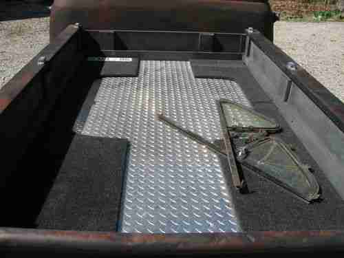 Bed is custom built using eighty (80) year old barn wood and an aluminum diamond plate bed floor with custom surround.