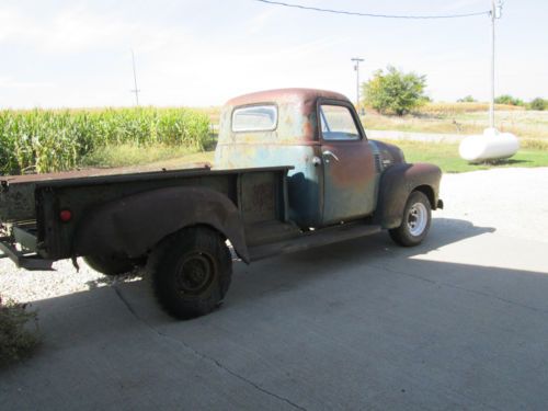1950 chevrolet 3100 long box three window truck,perfect for rat rod or restore,good floors,doors and fenders,all driveline still in truck but not running,this does have a iowa title and truck was put in storage on title,this is a pretty solid truck that has alot of potential,any questions please call 515-681-4191 and i will be happy to answer any and all questions