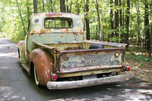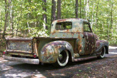 1949 Chevy Pickup Truck 3100 Patina Hot Rod Up for sale is my 1949 Chevy Truck. It has one of the coolest patina I have every seen. This truck was built to be an everyday driver, it all started with finding a truck with a great patina and a very solid body while having a nice comfortable interior and a great riding vehicle. The body on this truck was super solid the doors shut perfect from day one and everything lined up great. This truck was not just throw together I was very picky about how it was built from the fabrication to how everything was mounted. Everything was inspected and if it needed to be replace then I replaced it. The engine runs great all the lights work the blinkers work and all the door mechanisms work. Please read carefully and scroll down to all of the pics. There is also information about a title and payment below pics. Description: 1949 Chevy half ton 3100 Engine 350 sbc engine runs great never overheats 700R automatic transmission 1987 S10 frame that has been primed and painted Aluminum radiator Custom painted and pin striped air cleaner Billet valve covers Coker wide white wall tires Smoothie steel wheels custom painted Disc brakes in front and drum in rear Power steering with new power steering pump and gear box Lokar shifter New glass and rubber all the way around New door rubber and seals New custom carpet with leather trim to match seat Original bench seat with custom upholstery and painted original seat frame Dolphin gauges speedo is not hooked up the other gauges work good New dash components Original steering wheel and steering column New old style radio with ipod aux connection and new dual coil over speakers New 20 circuit wiring harness Led tail lights Xexon head lights Fulton style visor New wood bed and bed strips As you can see almost everything is new, I am probably leaving something out so just let me know if you have any questions. ,