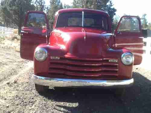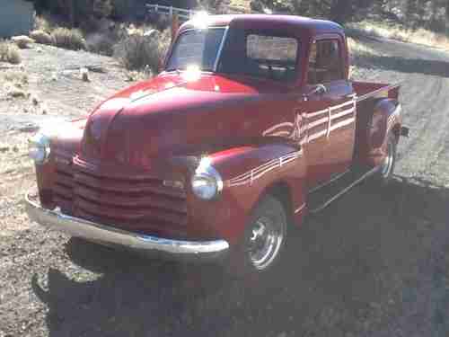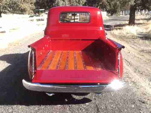 1951 Chevy Pick Up that has been newly restored. This truck was originally restored sometime in the 1990's, there were only minor dents and dings that required repair. The underside was painted while the bed was off. The oak boards in the bed were removed and refurbished. Bronzed windows all around.