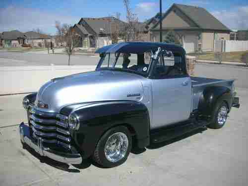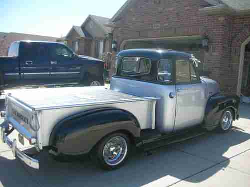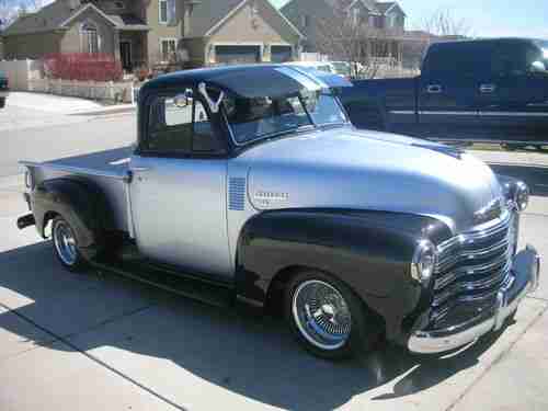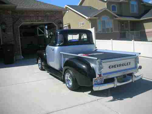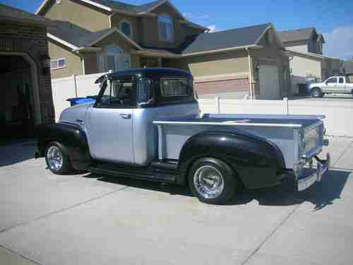 Here is your chance to have a very nice show truck, Heidts front end, ( Mustang 2 ) motor 350/4bolt main mild cam . bored .30 over. 4 core raditor . Lots & lots of Chrome . Turbo 350 trans. Dyna flo exhoust. Camero rear end . VDO gauges . Interior is gray & black . Marblleized dash , candy gray & black . Alpine stero . Black carpet. Dayton wire spoke wheels ( 100 spokes ) size 15x8 . 1954 back bumper. Fulton Sunvisor . original am radio ( works ) . Custom Bed cover . Chrome bed rails / oak wood, Black & silver paint. this truck won best of show at the 2012 auto rama show. The buyer of this truck must arange for pick up , after auction winner must pay within 5 days, certified ck or money order . for any questions call joe at 1-801-580-3008 thank you,