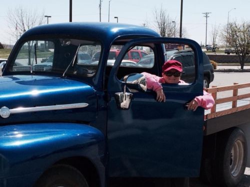 1952 Ford 1 Ton Flatbed Dually Truck is rare. It's got a huge 1970 350 Chevy double hump heads engine, dual headers and Dual exhaust.