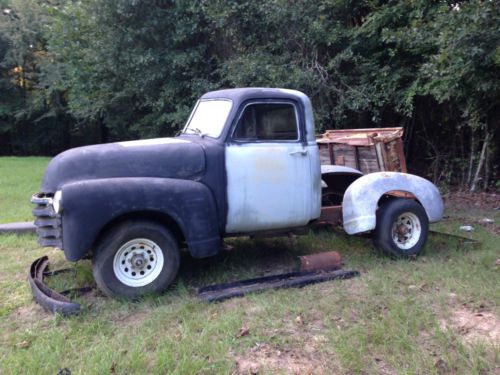 I'm selling the Advanced Design Chevrolet pickup. Assembled November 1952 in St. Louis. It currently runs when fuel is added to the carb and has 48k original miles. It is about 95% complete. The bed, hood, rear fenders, running boards, and bumpers are unbolted. The body has various holes and repairs as well as an older coat of primer. Newly insatlled parts include: Fuel pump Distributor rotor Distributor points Condensor Gas sending unit Spark plugs Spark plug wires Ignition coil Fuel filter Optima Red Top Battery. It rolls fine but the brakes are mostly non-functional. This vehicle has no title. Feel free to ask any questions! |