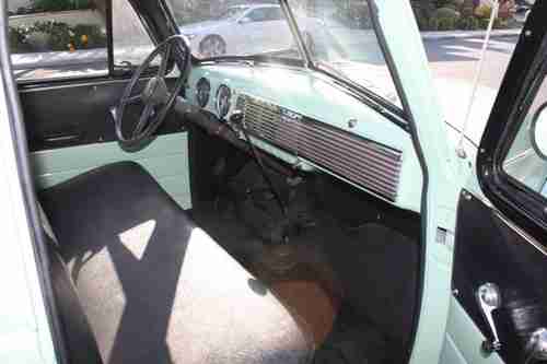 This truck is a great daily driver completely rebuilt from frame up. Originally built in Los Angeles California plant and now comfortably garaged at my home in Encinitas. This classic stove bolt has never left southern California. The beautiful thing about buying a clean california truck is that there was virtually no rust and the body was clean and straight having never been in an accident. The engine was kept to the original style 6 cylinder but upgraded to a powerful 261 with 858 high compression head. All new Dual Fenton exhaust with new vintage Smittheys and chrome tips, Edelbrock twin air intake with twin rebuilt Rotchester manual choke carbs, chrome air cleaners. All new wiring, upgraded to 12 volt system, electric windshield wipers, New alternator, new radiator, all new chrome, I believe to be the original bed in excellent condition, New shocks, rebuilt brakes and lines, new rubber around glass and doors. Quality sound and heat barrier installed throughout cab, new rubber floor mat as well as extra new carpet kit (not installed). Rebuilt Clutch, upgraded 411 rear end. I could go on listing items as I have replaced, polished, chromed or repaired almost every part and have over $27,500 in receipts over the past two years getting this truck to look and drive like it does. The interior is immaculate with only minor discoloration and cracking on the steering wheel. Everything works, the instrument panel was replaced to original style but upgraded to reflect the correct oil pressure and voltage and reflects the 250 miles from the completion of the restoration. The paint is very clean though has a few imperfections and small chips. The logos on the doors are vinyl and can easily be removed. The paint is a color correct 63 Chevy Surf Green Lacquer though the fenders and bed have a clear poly over. The largest chip is pointed out on the driver side front fender close to the grill. The 4 speed manual transmission is solid and between the engine and new differential will run highway speed of 60mph with no problem. This truck turns heads where ever I go and I have many extra and original parts that can go with it. This truck is for sale locally and may terminate the auction early. Low reserve.