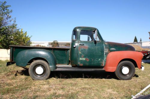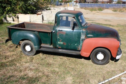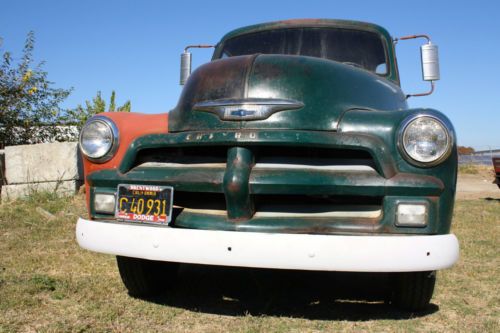 1954 Chevrolet pickup, Rebuilt 235 with new bearings and rings, 3 speed transmission on the column,6 volt, push button start on the floor, runs and drives good,all gauges work, all lights works, horn works, glass all in great shape and and windows roll up and down easy, body in good shape, only rust is in passenger side cab corner and small pitting on passenger side floor by kick panel, bed is in good shape and not beat up,original rims ( 6 lug ) 6.50/16 LT tires,Has been in California all its life and been in the same family since 1972 as all paperwork and title shows, California Title, call for more info at 916-996-2037