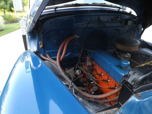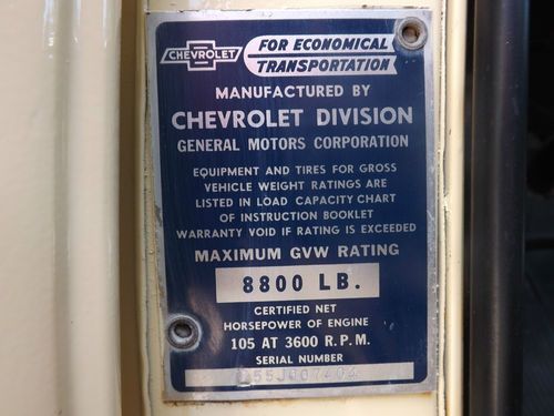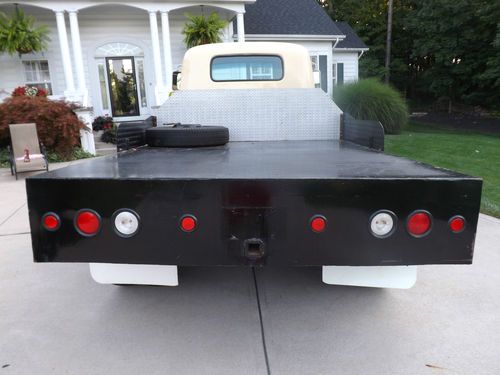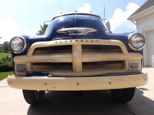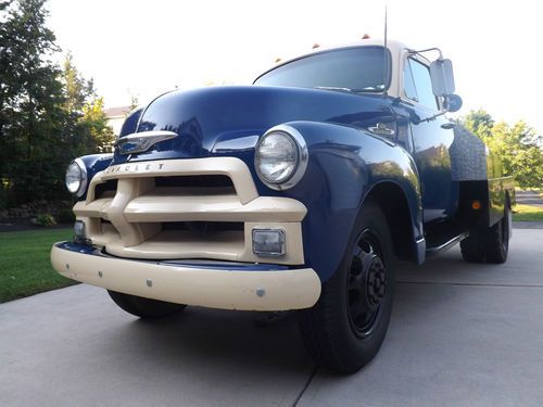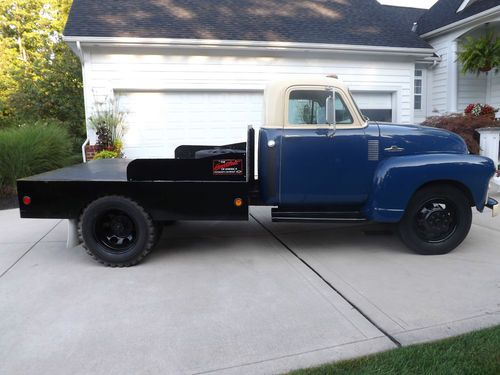 Beautifully restored Chevy Model 3800 One Ton Dually. 235 CV Inch Engine with optional 4 speed manual transmission. 33,196 Miles showing on the odometer. The Blue & Creme two-tone cab shines and shows no fading, rust, or rust bubbles. Frame is in excellent condition. Floor pans are original and solid. Doors do not drop and close tightly. Windows roll up and down and pop up cowl vent works. Headlights and high beams work. Parking brake, parking lights, and all marker & cob lights work. Separate toggle switch activates rear backup lights. Turn signals and dash turn signal indicators work. Horn, speedometer, all gauges, and interior lights work. Wipers work, radio delete. Gauges and lenses are clean and clear. Interior is painted cr`eme color and has like new door and head liner panels. Seat adjusts and has no sags. Couple very small imperfections in covering. Floor is carpeted and all carpet is covered with a one piece black mat. Good tread on tires but they are old. Front spare and wheel. Built in tow receiver. Rebuilt carburetor. Truck starts, drives and runs great. No trades, no brokers. This truck is for sale locally and I have the right to end auction early.