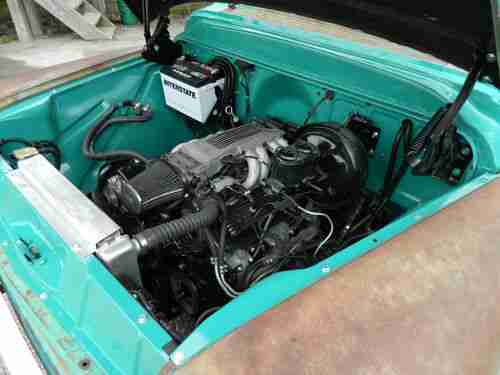 Engine is a tuneport engine out of a camaro or corvette runs great and strong also has aluminum heads and lots of new parts runs a-1 also has 700r transmission for that go home gear with aftermarket torgue convreter for proper shifting.Also equipped with a tranny cooler and aluminum radiator and all new lines and hoses.Also equipped with new dual exhaust that sound awesome.