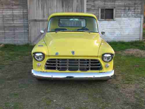 Up for auction is My 55 Chevy with a clean and clear title. This truck was completely restored 10 years ago and then gone through again last summer (upgraded). I drove it daily last summer, it a nice little classic cruiser. The small block V8 is from a 68 Impala and has a ton of performance mods, The transmission is a Turbo 400 and the rear end is a 10 bolt with air shocks. The front end was done right and is off a 70's Camaro. It has power disc, power steering and tilt wheel. Staggered 20" wheels, upgraded wiring harness including points conversion. All the switches, lights, gauges, dvd/stereo system things, are all brand new from last summer. Also the stainless and all the chrome are brand new bought and put on last summer.