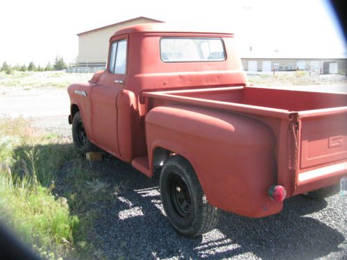 1956 Chevrolet 3100 Short box pickup , no motor or transmission , normal rust in the cab corners, lower fenders and floor, good box, tailgate and rear fenders , door alignment is good , they open and shut nice , window tracks good , stock suspension and rear end. feel free to email with questions , this is a good start for a full restoration . as is where is , for sale locally , buyer responsible for all shipping costs