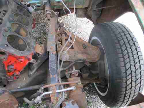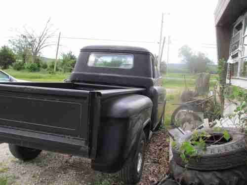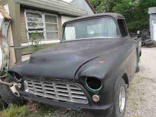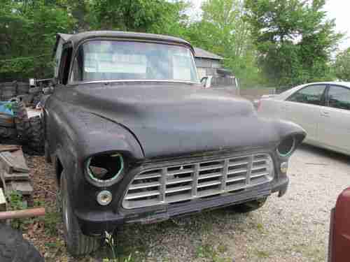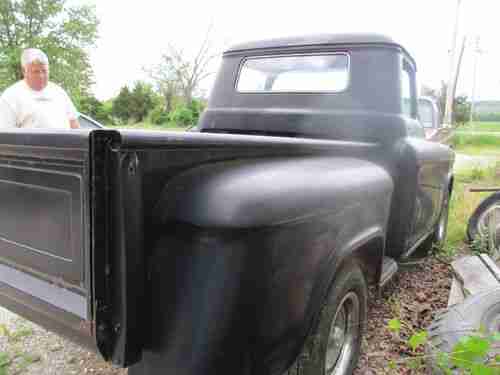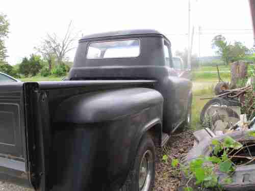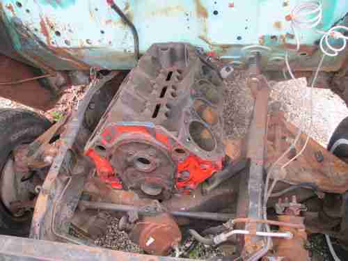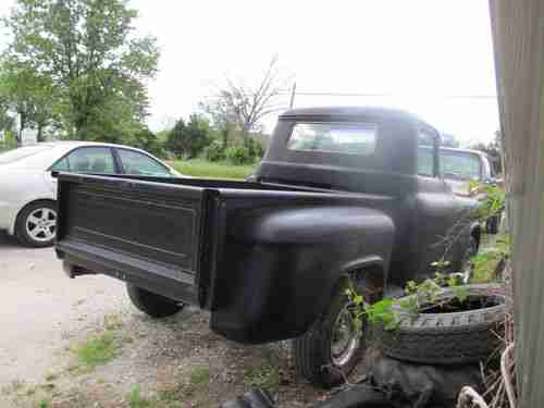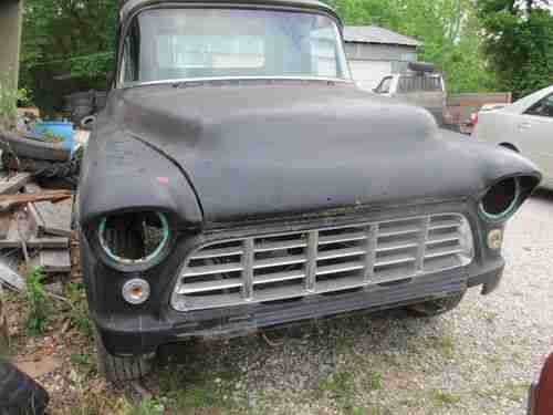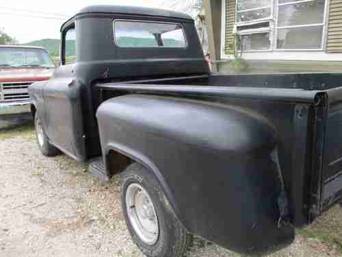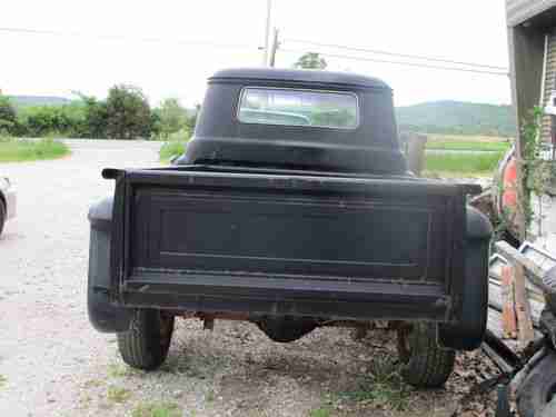 You are bidding on a 1956 Chevrolet Pickup. I bought this as a project about 10 years ago and never got it finished. It has been in storage for a long time. This truck is not a project for an inexperienced individual. It needs a lot of work but will make a very good truck. The body is very straight with very little rust. It does have a small amount in the steps and a small amount in the front fenders. The bed is very nice but the floor is gone. It is in mock up stage right now with everything sitting in place. It needs to be taken back apart and the frame painted and body work done. Then reassembled. I do have the original front seat, front and rear chrome bumpers in decent shape and a few other small pieces. There are no door glasses or dash instruments. I replaced the original front suspension with a 1980 Chevy pickup front clip. If you look at the frame where it is put together, it would be very hard to tell that it is not a factory frame. The rear-end is also a Chevy pickup 12-bolt and I was going to use all other components from that style of truck. The truck rolls but there is no motor or transmission included. I have currently a 427 block and 400 turbo sitting in it but I am going to take it out. It is being sold with a bill of sale only. That means there is no title and I have never had one. It was lost many years ago. What you see in the pictures is what you are buying with the exception of the other items I mentioned. No more or less. If you have any questions feel free to ask. Thank you.