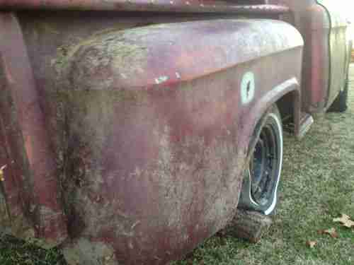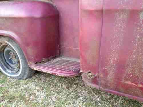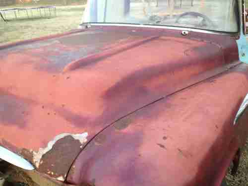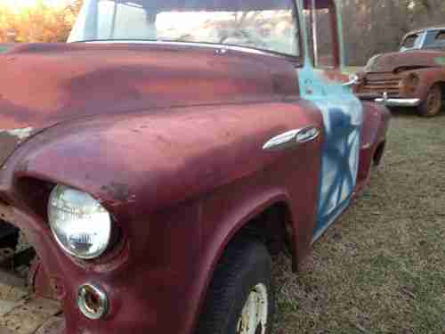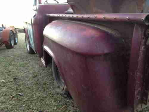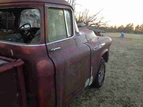 I want to be clear about this truck, this is a parts truck . It is a 1957 Chevy half ton short bed step side with a Big Back glass rear window. The floors will need to be replaced and some rust through on the cab cornners and passenger rear front fender. The front bottom of fenders are showing some sings of bubbling in the usual spots. Nice grill is included and grill support. The top of the cab is perfect and straight. The doors are also nice and solid. The bed itself is also nice and striaght. Like I said great parts truck. Good luck , No motor No transmission. Thanks 479-466-1924