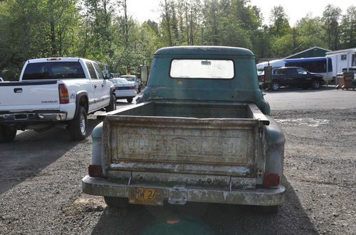 This is a Pacific Northwest pickup. First year of the dual headlights. Fairly solid body for sitting many years. Most of the glass is cracked. Needs a new home and some time. No engine in the truck or radiator. Tranny is there probably a 3 speed with a low. Bright work is poor but the body is decent that's the highlight. Clear Oregon title. If you are the lucky buyer we can help with loading on trailer or truck. Please pickup with in 30 days. I also reserve the right to sell this truck locally so bidding may be withdrawn.