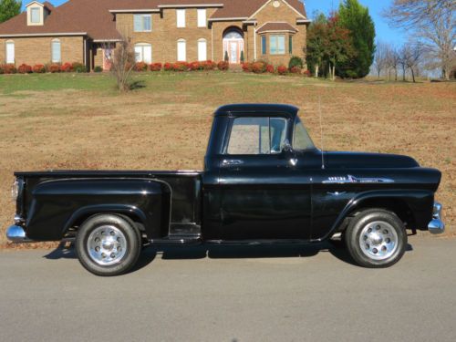 1958 Chevrolet Apache Stepside Pickup This is one of the nicest 58 Chevy Apache Trucks you will ever set your eyes on. This is a frame off restoration, It is as clean underneath as it is on top. To many new parts to name everything but here are some of what it has. 350 engine with aluminum intake and Edelbrock carburetor. Has chrome alternator and AC compressor, Has good cold air. Has automatic 350 turbo transmission on the floor with low car shiftier. New duel exhaust New gas tank. All new interior. Head lights, tail lights, blinkers all work. MPH, temp, amps, oil, gas gauges all work. New wheels and tires. Front tires: P235/60RI5 Rear tires: P275/60R15 Truck is ready to go, don't miss out on this one. For more information call Obie at Cell 423-333-4701 or Home 423-745-8362 For more pictures Email rapryor14@gmail.com |