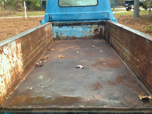 This project was stored inside a building for the last 21 years. I am selling for my friend who lost their father and this was part of the estate.This truck will need to be restored. The orinigal motor is in truck inline 6 cylinder- the motor will turn freely. There is no battery. It has a 3 speed on the columon trans. We have the oringial rims for truck-the older man put these rims and tires to get it around. Truck does have rust on the sides of it. Nothing that cant be fixed. I see no rust on floor boards. There is very min rust on the bed. We do have some of the chrome peices inside the cab. This truck will have to be towed on trailer or by shipping company. Miles are showing 50,309-We can not promise this is correct-all we have to go by is what is on the dash. We do know the truck has Nc inspection year 1992. Truck is sold as is with no warranty due to the age of truck. Truck has a clean NC Title. Deposit must be paid with in 48 hours of auction ending and balance to be paid with in 5 days of auction ending.