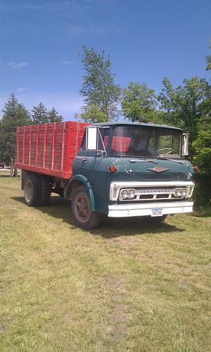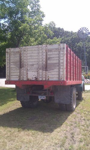 1961 Chevy C70 Flat Nose Grain Truck. Body is rust free, motor runs great V8 Gas- 342,345??, Hoist and box in excellent shape, Needs back tires, Needs some brake work, After setting a long time fluid leaks out. Runs down the road great. Heavy springs in the front to help with heavy loads, Manual steering but turns great, 14' Omaha box in excellent shape. No tarp.