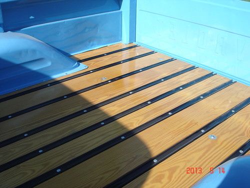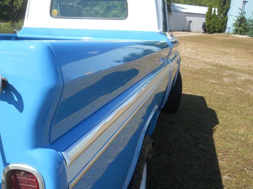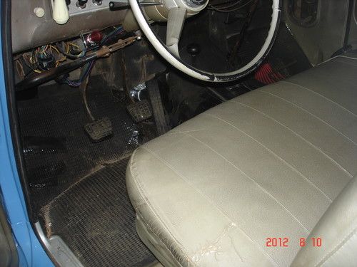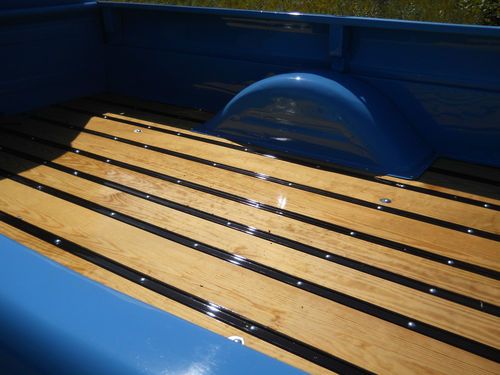 I HAVE REPLACED THE INNER AND OUTER ROCKER PANELS WITH NEW, AND REPAIRED ONE CAB CORNERS WITH NEW SHEET METAL. CAB FLOORS WERE SOLID. I REPAIRED THE CAB MOUNTS, AND INSTALLED NEW CAB PERCHES AND BUSHINGS. THE TRUCK IS VERY SOLID. FENDERS, AND BOX WERE COMPLETELY RUST FREE. I HAD THE BODY WORK DONE PROFESSIONALLY PAINTED WITH FACTORY ORIGINAL COLOR 507 LIGHT BLUE SINGLE STAGE JUST AS IT WAS ORIGINALLY. THE PAINT IS NOT PERFECT, BUT VERY GOOD. THE DRIVER DOOR OPENS AND CLOSES FINE, BUT WILL NEED ADJUSTMENT AS IT SCRAPES ON THE ROCKER PANEL, I HAVE SHOWN PICTURES TO ILLUSTRATE THIS. THE TRUCK HAS CUSTOM CAB TRIM WITH ALL CHROME INTACT, CAB TRIM SAILS, DELUXE HEATER AND FULL GUAGES. I HAVE INSTALLED A NEW BED WOOD KIT FROM CLASSIC PARTS, WITH NEW STRIPS AND HARDWARE. I HAVE INVESTED OVER 8K IN THIS TRUCK IN REPLACEMENT PANELS, PAINT WORK BED WOOD KIT, AND LABOR.