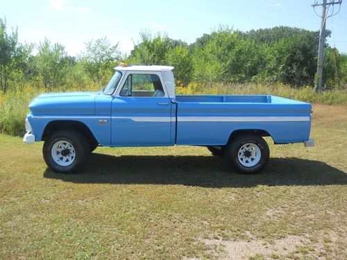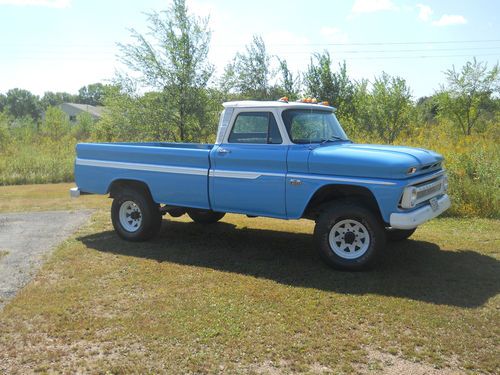 THIS 1966 K-20 IS BEING SOLD AS-IS. THERE IS NO WARRANTY IMPLIED OR CONSENTED. IT IS A 47 YEAR OLD TRUCK THAT WILL NEED AN OWNER WHO CAN CARE FOR AND MAINTAIN IT CONSISTANTLY. IT IS NOT A TRUCK THAT CAN BE USED FOR TODAY'S HIGHWAY TRAVEL, ALTHOUGH IN THE RIGHT SITUATION IS A GREAT RURAL DAILY DRIVER, FARM TRUCK, RANCH TRUCK, VACATION HOME, HOBBY FARM, SMALL BUSINESS ADVERTISING TRUCK. OR IS A PERFECT TRUCK TO TAKE THE REST OF THE WAY FOR A SHOW TRUCK. ALL PARTS ARE READILY AVAILABLE, ALL MECHANICAL PARTS ARE FOUND AT NAPA, AND ALL BODY AND RESTORATION PARTS ARE AVAILABLE FROM LMC, CLASSIC PARTS, JIM CARTER, FILLING STATION OR FROM 4-5-6 CHEVY PARTS.