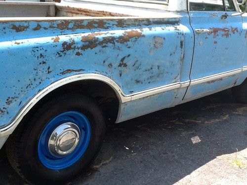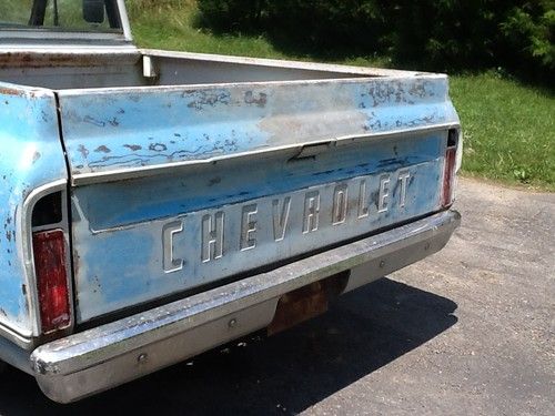 Truck in good original untouched condition. Rust in common places, cab corners, rocker panels, and small area at A-post in floor but fixable. Bed floor gone but a bolt in metal replacement can be bought for $350.00. Frame around rear end weak but fixable. Nice original bed sides. Truck has never had a radio installed. I have owners manuel, Protect O Plate card and books. Great Rat Rod! Patina looks awesome, was just going to clear coat entire truck. Factory wheels sandblasted and painted with stainless. Dog dish hubcaps. Great bumpers and glass. Truck was bought new at Goodwin Chevy in Salem, VA with paperwork.