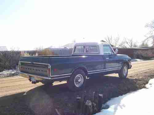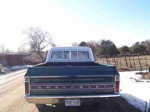 1969 Chevy CST Camper Special 3/4 ton longbed 2wd. V8, 4 speed, 402 big block stock motor, although it has a badge for a 396, they ran out of 396's at the end of '69, and started putting 402's in. Has camper plate, pick up box floor, rear shock absorber, power steering, tachometer, heavy duty rear spring, front stabilizer EQ, auxiliary spring EQ, max traction rear axle, driver and passenger spotlights, green vinyl custom trim, and chrome bumpers, all original. Very straight body, a little rust in the rockers and the cab corners. 8ft bed. Wood in the bed needs replaced. Steering wheel is not stock. Great truck for daily driver. Runs strong, does not smoke or make any noise. Rides and drives like a car. 16.5" wheels, alloy rims, tow hitch. Factory 2.5" exhaust. As is. Call 540-514-1013 with any questions.