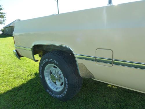 This truck is a 1982 Chevy C20 Silverado Trailering Special that has a heavy GVW rating of 13,000 pounds. Its a regular cab pickup with an 8' box that is in great shape. The engine is a 454 CI V8 that recently had the cylinder heads refurbished with a new camshaft, lifters, valves, and pushrods installed. The transmission is a Turbo 400 that seems to shift perfectly and the rear gear is a 3:73 ratio. The truck is a little cold blooded like a typical carbureted engine, but runs and drives great. It has a nice set of ALCOA aluminum wheels too. This truck has less than 90,000 original miles and I have a log/note book dating back to the original owner showing that the odometer has not rolled over 100,000 miles. While there are some minor body blemishes that you could expect from a truck this age, it has definitely been taken care of. The interior is in pretty good shape with a single crack in the dash and a little wear on the inside door panels but overall very nice. The inside of the truck box is in nearly new condition as you can see in the photos. The A/C belt was previously removed so I image the A/C system needs some repair and the fuel gauge does not work for the passenger side tank (prob needs a sending unit or wiring repair) but works fine on the driver side tank. Even though the gauge does not work for the passenger tank, the switching valve does work so both tanks are functional. Please look carefully at the photos and more are available by request. More than happy to answer questions, please ask. No trades or payments. Listed locally so may come down before auction ends. $500 payment due within 24 hours of winning this auction, with the rest due when the vehicle is picked up. |