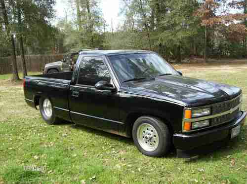 1991 Chevy Pro Street truck, has stock 1995 350 engine and automatic overdrive transmission, not sure how many miles is on either one, but it runs and drives great, fully tubbed, with 33s tucked underneath with adjustable coilovers and leaf spring combo, fuel cell in back, has a/c, heat, cruise, power windows, etc. Has solobaric kicker 12s behind seat with old school acuastic 360 amp and crossover, needs mids and highs installed. Did not have vin number with me so I put all 9s for now. Very cool truck but I never drive it and I bought a new one so I need to sell to help pay for it. $10,500. I am not interested in shipping this truck, I would prefer buyer bring payment directly to me and pick it up. Thanks!!