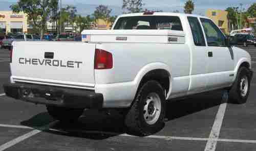 2002 Chevy S-10 pickup truck with only 89K original miles. This is a one owner 4-wheel drive with a 3 door ext-cab. Auto trans, 4.3L V6 engine, cold A/C, well maintained since new ( was owned by state of Calif ), has new looking tires, warn 8K lb winch and a heavy duty Weather Guard tool box in bed of truck. This truck runs great, body has no rust or dents, paint is excellent, interior is also very good condition. These trucks are hard to find and not many are 4-wheel drive. Located in San Diego and bidders can come test drive/inspect by contacting me at 858 354 1992