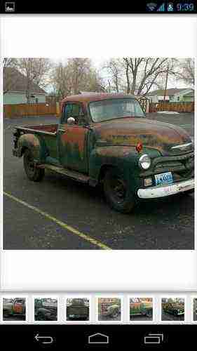 I have for sale a 1954 Chevy 3600 pickup truck. It has a strong running 235 6 cylinder engine. It has new glass, seat, tires. Brakes a re in good working condition. Will start and drive nice for age of vehicle. Any questions please call or text 307-258-4560. Weekday calls 6-9 P.M only please MST.