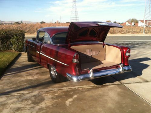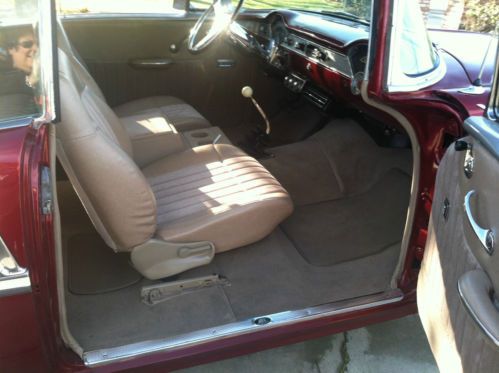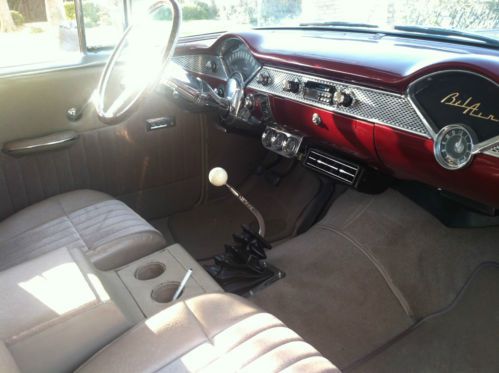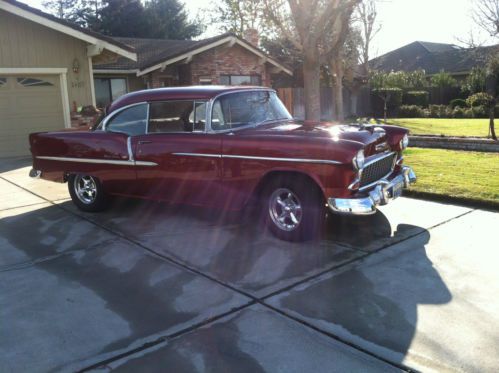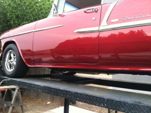 55 CHEVY BELAIR HARDTOP, 350 Engine, 4 Speed transmission, Air conditioning, 2 1/2" Exhaust, Flowmasters,Power steering, with Billett tilt wheel,electric fan on radiator,front disc brakes,newer upholstery,5 spoke 15" chrome summit wheels,tires new, Body in good condition, original panels, No rust. LOTS of updated parts.