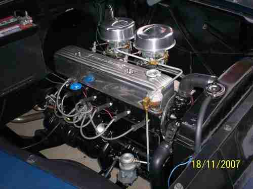 Features: 235 hydraulic lifter engine (rebuild is under 2500 miles). Engine has RV cam, 2x Carter-Weber progressive carbs, HEI, alternator. Transmission is new Tremec 500 overdrive 5-speed. At highway speeds, tack runs less than 2000 rpm. Audiovox AM/FM radio. New fuel tank. Radial wide whitewall tires. Looks great and fun to drive.