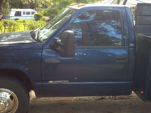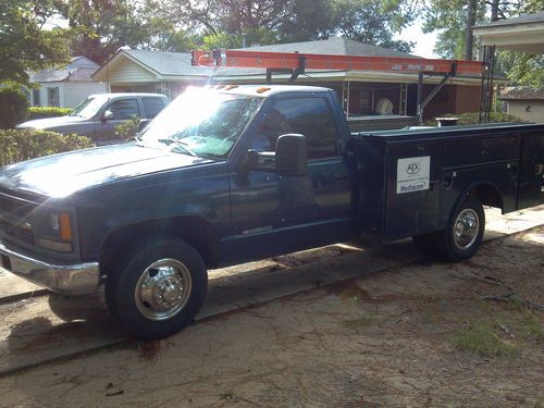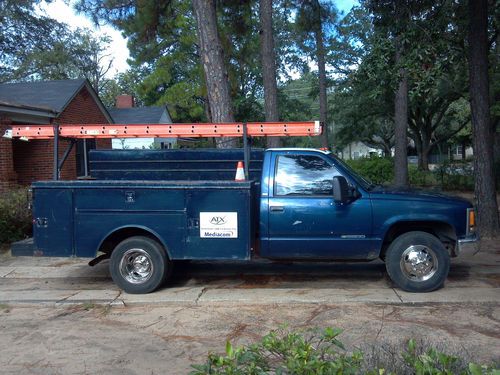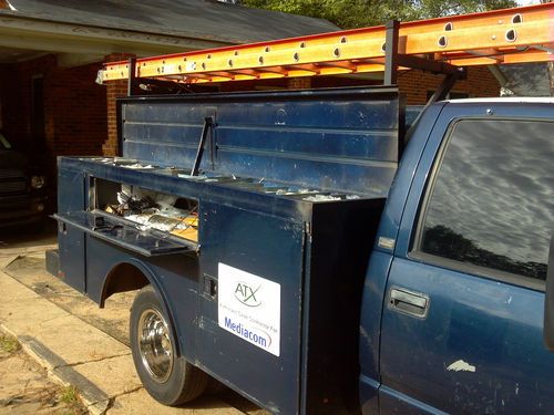 This is a 1996 Chevy 3500. It has an extra wide body with side compartments and hatches that open at the top of the body for more storage. The top storage is 5 inches deep. The truck was purchased from the city of Atlanta. I was told that it spent its career at the airport. Since purchasing the truck I have done all required maintenance. I did have the front end aligned and put new brake calipers, pads and rotors on the front. The A\C blows cold and the heat works as well. The tires are in good shape. I have used it to install cable for about 6 months. The job is not for me so I'm selling the truck and moving to something new. The headliner is intact but the seat has a tear on the drivers side. It has the rubber work mat in the floor. I have made some upgrades but I have the original mirrors and the will go with the truck. I installed LED strobe lights on the front and rear. The truck does not leak oil. The brakes are strong and it has two fuel tanks. The ladder is not part of this auction but the ladder rack will stay with the truck. The ladder racks are removable. I can be contacted at 229-407-0421 ask for Mac. I will post picture of the interior shortly. GOOD LUCK!!!