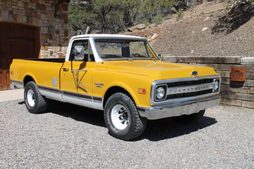 Beautifully refurbished 1970 Chevy C-20. 3/4 ton camper special with 8 foot bed and tow package. New interior, multiple replaced parts, new paint. Runs great. 350 engine and transmission. Odometer reads 60K miles, with the truck this clean, it may be all the miles it has on it. Partial build sheet states it was shipped to CA and has been in CO for the life of the vehicle. Please call, text, or email for further details. Priced below market value.