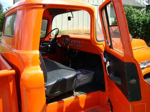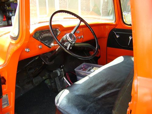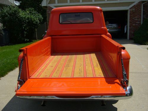 This "fat fender" short bed Apache has only 850 miles on a complete rebuild of the original 283 c.i. engine, which runs like new. Has a new Edelbrock intake and 500 cfm 4-bbl carb. New headers with complete new Flowmaster dual exhaust. New MSD distributor and coil. Rear axle just rebuilt with new 3.38 differential, plus new bearings, seals, brake drums and shoes. New shocks front and rear. Transmission is original 3-speed with some 1st to 2d synchro noise but I have a spare. All original parts are on the truck except for the aftermarket improvements. It is licensed and driven on streets and highways. Stored indoors. I don't know the miles on the chassis as the odometer was reset when the engine was rebuilt, but it isn't ultra high and doesn't appear to have been abused.