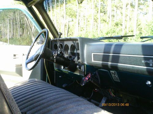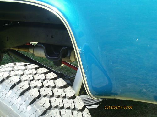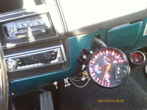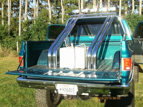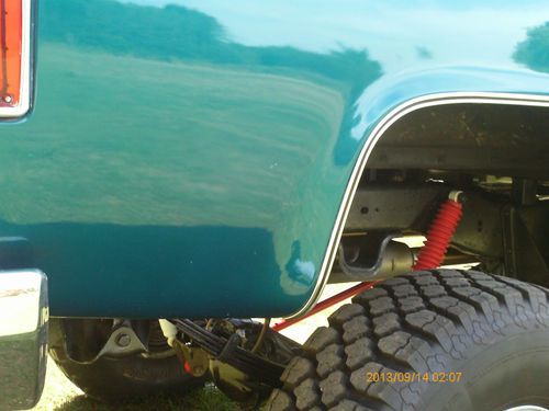 Up forsale my 1976 4x4 Chevy pickup, with a roll cage, a chrome roll bar, 35 inch mud tires, a 6 in suspention lift, aluminum race cell in box, monster tack with oil, coolant, guages built in & shift lite. It has a 454 ci v8 with a Demon carb, Edlebrock aluminum intake, Hedman headers, stainless dual exhuast, with flowmasters, aluminum valve covers, chrome aircleaner.The engine is pretty clean, the turbo 350 trans was rebuilt less than 1000 miles ago by a previous owner and has a 2000 rpm b&m stall converter. The tires are 35x 12.50 x15 Kelly Safari MSR's they have real nice tred, half inch deep I'd say, not much cupping & don't rumble surprisingly quiet, think they are a radial not old bias ply. The body has been repainted but has very little rust, mostly just the cab corners, there is some small bubbles on one side of the box, both shown in pictures, the rockers I think are original not welded patch panels. The radiator support has a small rust hole but you can't see it anyway. The under side of the body still had the original paint on it, "shinny". The frame has no pit rusting or scale, just some under coating that looks like rust in the pictures.The steel brake lines are mostly original,no rust. The whole front clip has been changed to the 80's style, the interior is mostly changed to 80's style also. The roll cage is bolted to the floor in the cab, pretty cool, but the window cranks rub on it so it's a little harder to roll the windows down. The windows are tinted, not perfect, but still nice.The dash has cracks. The front brakes just had new rotors and pads and seem's to stop good. The steering is pretty good but has some play due to the lift. I think the ball joint's were replaced and all the u joint's, they look too nice to be original. The 4 wheel drive works good, trans case is tricky to get into 2 wheel hi but shifts still,might be becuase of the lift? The horn, air conditioner,emergency brake,and fuel guage don't work, blinker won't cancle to the left I think, high/low headlite switch isn't working, only two fog lites are wired on roll bar, others work but need a separate switch, wipers are on a toggle switch & the heater motor. I'm not sure of the actuall mileage, odometer reads 71,*** but may not be actuall! JVC cd player works needs some speakers. I have a stock gas tank if you want it. I'm sure I'm forgeting something, but if your interested give me a call if you need to know anything. phone # 1-608-669-8556 Vehical comes with no warranty. Local Pick up only I won't ship, vehical must be paid for in cash, with a $500 deposit at end of auction. Deposit can be through paypal. Full payment within 7 days if in person unless we arrange something different.