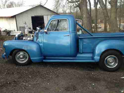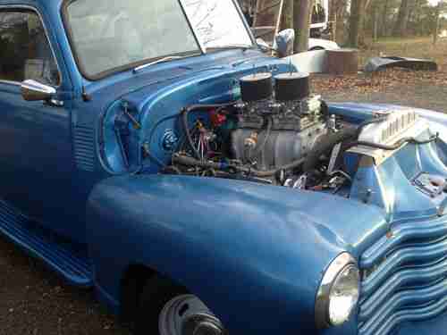 I have for sale a 1949 Chevrolet 3100 series pickup truck. This truck is an older build but runs like a bat out of hell!! It has a small block chevy engine with a 6/71 blower on it with two carbs. 18 inch rear Mickey Thompson tires. I don't know a whole lot about the engine other than it is super fast. I have another 49 truck with a SBC 427 dynoed at 610 hp and this truck will run circles around it. My plan was to pull this engine and put it in my other truck, I will never do it as time just doesn't permit. So I have decided to sell it to get more room in my garage. Which by the way it has been stored inside with climate control since I've had it. I found a little info from where I bought it and will list that. I did put two new holley carbs on it last month, changed the gear from a 4:88 to a 3:73 gm rearend. The body is decent, only a little rust in common places but not through, best I can tell. This truck is set up to run with a roll cage and race seats, 5 point harness and much more. MSD everywhere, plus it has a wet sump kit on it. Disc brakes all the way around too. It is street legal and I do have tags and insurance on it and drive it occasionally. Not an everyday driver but nice to cruise around with. Has a ton of good equipment on it, it's just an older build. I don't notice any leaks on it at all. It could use a little tuning here and there but it will drive right now. This truck mostly just sits in the garage along with my other one. I am selling as is-where is. This is what was listed when I bought it, I believe it is more than a 350 as it will snatch your neck back with just a little pat of the gas!!!