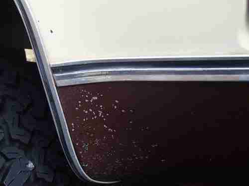 The vehicle has had the fenders slightly clipped to handle the 35 inch tires in front as well as a few small scratches and small dings on the side molding. The interior is in exceptional condition with the exception to some sun damage on the top of door panels and one very small separation on the drivers side seam in the seat. The cover was installed when the vehicle was new but through the years there is that very small separation.