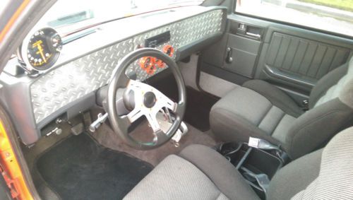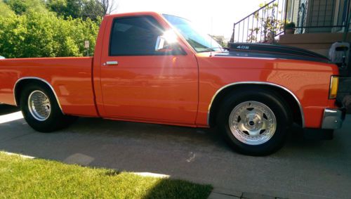 YOU ARE BIDDING ON A VERY NICE 84 CHEVY PROSTREET S10 THIS TRUCK HAS A 406 ENGINE A 400 THAT HAS BEEN BORED OUT. THE BLOCK HAS BEEN LINED BOARED AND DRILLED FOR 4 BOLT MAINS, HAS SCAT ROTATING ASSEMBLY, CAMEL HUMP HEADS THAT HAVE BEEN REWORKED WITH BIGGER STAINLESS VALVES. SOLID LIFT CAM, ROCKER SHAFT GIRDLES, DART INTAKE, HOLLEY 650 AND A CARTER 750 CARBS. HEADERS, MSD IGNITION, DIST, COIL, AFTERMARKET BALANCER, I BELIEVE A GRIFFEN RADIATOR. NO POWER STEERING, BUT POWER BRAKES, WITH A CRANE CAM EXTRA CANISTER, NOT SURE OF THE CAM SPECS BUT ITS A HEAD TURNER EVERYTIME WE FIRE IT UP. TURBO 350 TRANS WITH A CRONE CONVERTER 3500, MANAUL SHIFT, RATCHET SHIFTER. HAS AUTO METER TACH, OIL PRESURE, COOLANT TEMP, TRANS TEMP, FUEL GUAGE, BATTERY VOLTAGE GUAGES. REAR HAS BEEN TUBED, COIL OVERS, HAS A NARROWED FORD 9 INCH WITH STRANGE SPOOL AND STRANGE AXLES, THE REAR TIRES ARE M/T 31X18.50X15 I THINK THE GEAR IS A 373. FUEL CELL OUT BACK AT THE REAR OF THE TRUCK UNDER THE BED. THE BACK HALF WAS A PRO. JOB VERY NICE WELDS AND SET UP VERY NICE. LIGHTS ALL WORK. TRUCK RUNS VERY VERY STRONG. ITS A THUMPER!!! HAS DUAL EXHAUST WITH THRUSH MUFFLERS, SOUNDS AWESOME. THE PAINT LOOKS GREAT FROM 15FT AWAY, BUT ITS NOT PERFECT, ITS SLICK, BUT ALOT OF TOUCH UPS AND THINGS. PRETTY STRAIGHT THOW. TINITED WINDOWS, MANAUL WINDOWS, ALL WORK. ITS NOT A SHOW TRUCK, BUT A PRETTY DARN SHARP DRIVER!!! ANY QUESTIONS PLEASE ASK, HATE TO GET RID OF IT, BUT NO TIME TO ENJOY