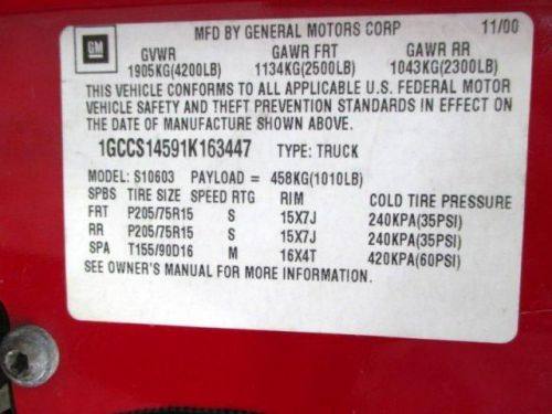 VIN (Vehicle Identification Number): 1GCCS14591K163447