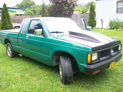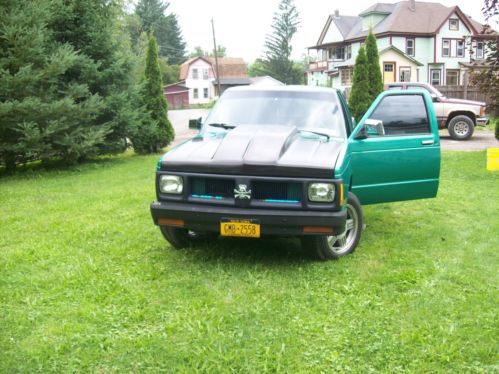 up for bids is a 1991 chevy s-10 cab and 1/2 350 v8 turbo 400 with shift kit 373 rear non posi and 15 gallon fuel cell with 0-90 omh sender and camaro 25th anativersary wheels with good tires needs interior work and a new carrier bearing truck runs great is a daily driver and not bad on gas has a 100000 miles 0n body motor and trans about 20000 miles truck need a good home needs to be pick up as is