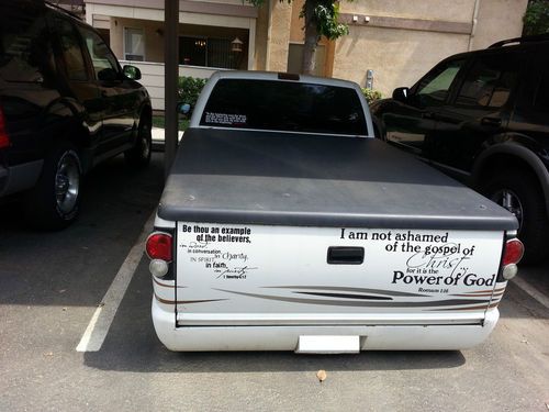 with 3 kids we all cant fit ya see ;) here are the things i have to let you know about the truck, about 5 years ago the radiator cap was vibrated off and the motor was ruined while on the freeway and it got a motor put in that had 50k miiles on it the motor has about 55k on it now. the ac does not blow cold, the transmission has always had a small leak, i just put more fluid about once a year, the front air bag has a small leak so if left lifted up after a few days it will be soon be sitting =) run very strong and smog is current, i started to do a few custom things to the front end and then just stopped when family started. well thanks for looking , know more at about me at illbehonest.com ;)