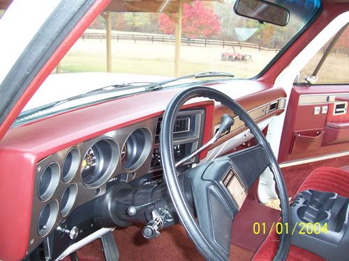 If you are looking for a show piece, look no further! This original short-bed truck is in like-new condition. It has low mileage (37760 actual miles), has always been garaged and never smoked in. It has a 350 throttle body fuel injection engine, 700 R transmission, cruise, tilt steering, ac, AM/FM stereo with cassette, power windows and door locks, power disc brakes, factory undercoating (undercarriage, doors, fenders, and hood) and dual gas tanks. It is an excellent driver with no squeaks or rattles.