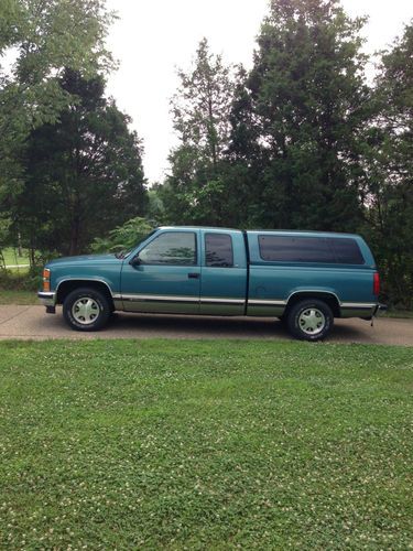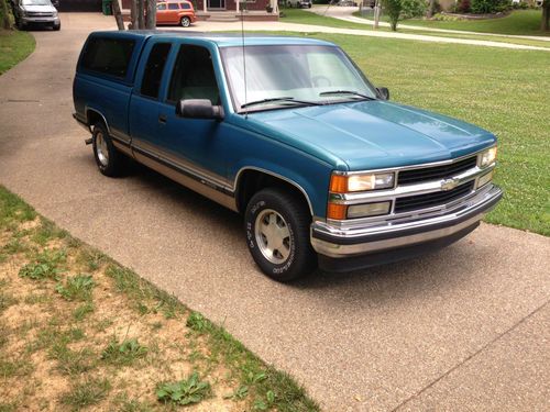1998 Ext Cab Fleetside Pickup with a 5.7 (Vortec 5700) V8 and 4 Spd Auto trans. This vehicle has been in the family since new. It has 83426 original miles and has been well kept. The AC blows cold, all knobs and switches function. The paint is in good shape with only one spot where the clear coat is peeling on the topper(I forgot to photo. Will add ASAP). There are a few specks of rust on the rear bumper but no rust beyond that. It will eventually need a headliner. There are a few burn marks in the upholstery, however the truck has not been smoked in for 6 or more years. Ash tray was never used. Tires have great tread on them, The truck has some wear from use but nothing uncommon for the age of the truck. Reliably starts, runs and shifts well. Doesn't use any oil. Good majority of the milage is interstate. I have the original window sticker. Great starter or project truck!