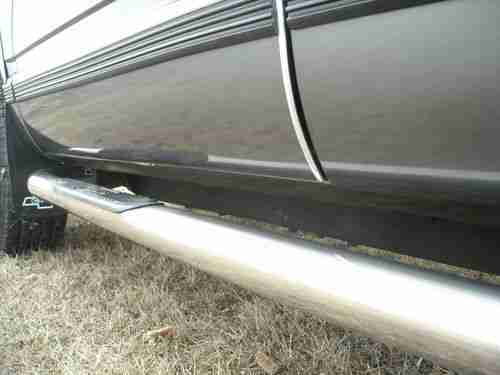 There is one tiny indentation in chome in left front bumper. And one dent on left side of rear bumper under plastic cover. Looks like someone misjudged backing up to a trailer one time. Hardly noticeable, but they are there.