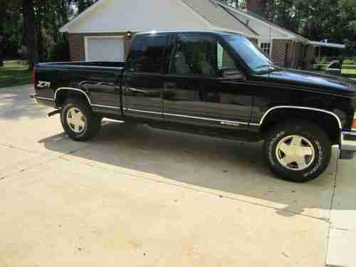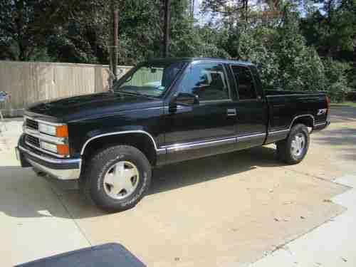 1998 Chevy Silverado Z-71 4X4 Extended cab 160,000 mi, Exterior Black in great condition some scratches as all 13 yr old trucks have, some on front of hood where bug reflector was, one small rust hole on passenger door that has been cleaned and cured to prevent further issues, good yeat wrangler tires, 2 yrs old and exellent cond, bed liner and class 3 hitch, Interior grey cloth exellent cond , no tears , all power, glass good, no cracks, a/c works excellent with a new compressor install 2 yrs ago, Mechanical, engine runs great, no smoke, oil changed regularly, trans runs great, new oil in rear end, no leaks anywhere, new starter, new battery, new brakes 2 years ago, new shocks 2 years ago, front wheel drive only used a few times, very dependably truck in great shape.