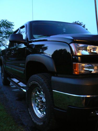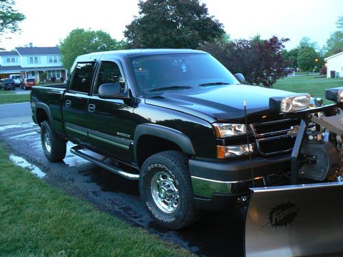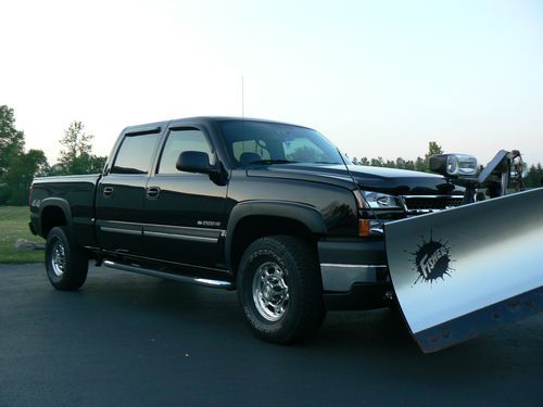 up for sale is my black 2007 chevy 2500 hd crew cab LT3. its being sold with a fisher 7.5 stainless steel extreme v minute mount snow plow. I am the original owner of the truck. u can see by the options that this truck came from the factory loaded and i spared no expense adding options or maintaining this truck. i added over $15000 worth of upgrades to this already loaded truck. anybody who knows these trucks, can see for themselves that this truck is well maintained and knows what they are getting. If you dont know about these trucks, i will tell you that this truck, with this set up and the stuff i added, makes it the cadillac of work trucks. this is strictly the bosses truck! the truck has 69k well cared for miles on it, 40k of those miles are all documented highway miles from my commute. even though she can pull a house, shes never been off road and never hauled or towed anything. she was strictly a daily commuter. shes barely broken in! it has the vortech 6.0 liter v8 motor that we all know is chevy's true powerhouse v8 motor thats capable of reliably getting 200k plus miles on her without a hiccup. when i say this truck is well cared for, i mean it! im kinda anal about preventative mint, i guess it a Marine thing! all regular service was performed and documented by GM dealer ie) lube, oil, filters, fluids, tires, inspections etc done every 3-6k miles. any in between service was performed by goodyear service. all upgrades were professionally installed and maintained. all original documents for purchases of added equipment, installation, and all service performed on equipment and truck is in a file for the new owner to take with the truck. your welcome. seriously, just look around and see if you can find a better low mileage, more decked out 2500 in this good of shape with all its regular service documentation anywhere near this price! (the cons) the only problem i have ever had with this truck other than the usual minor switch or bulb replacements, is recently it had a squeeky u joint which needed to be greased, i brought it in and the mech recommended replacing the front u joint soon, which is common on these trucks. i had them replace both front and rear with upgraded stock at that time rather then wait till later. there have been no other mech issues! paint issues) although minor, i will list that there are a couple little dings and scratches here and there which are barely noticable and can be touched up or buffed out by someone who knows how to do it. i never bothered because after all, ts supposed to be a truck! you cant really notice them but its a black truck and im an honest guy! so here goes.. 1) there is a small door ding in the pass door from some pinhead in a parking lot that doesnt know how to open a damn door! i tried to show it in pics but its small. 2) there is a small scratch / ding on drivers side rear bed panel just below the bedrail. that was from yours truly, lifting a picnic table into the bed. that too can be buffed out or touched up, but its not really that noticable either. 3) this one pissed me off at first but i got over it, i didnt notice till after the fact that GM doesnt use pads under the top rails of thier bedliners (brilliant). needless to say the bedliner rubbed the paint on top rails! GM offered to touch up the paint on the top rails but i declined because i was going to get a spray in liner done anyways. long story short, i didnt get the liner done and if you lift up the liner you can see the paint is scratched on top rails. not really noticable unless you lift up liner and it can be touched up as well. come on guys, even though she's sexy, its still a mans truck and some scratches are to be expected! ok thats it for the cons now i will list some of the options but i only have limited room so feel free to ask any questions. 1) top of the line 7.5 fisher stainless steel extreme v snowplow with fishstick handheld control & mount, barely used 3 seasons. used only for personal use to plow 3 blacktop driveways, mine 100ft, parents 60ft, grandparents 70ft, in mint condition. 2) suspension leveling kit 3) GM snow plow prep pkg (bigger alternator, hd wiring, roof lighting wiring prep with dash switch) 4) GM trailering pkg with added elec trailer brake & mount 5) GM bug & rock hood deflector 6) GM full cab window vent shades 7) weathertech full cab molded floor mats 8) 2" drop adjustable reese hitch with 2 1/4 ball & master hitch lock 9) GM over the rail & tail bedliner 10) GM chrome tube steps 11) GM chrome bumper pkg 12) ext transmission cooler 13) in dash 6 disc cd changer stereo with bose speakers with rear aux controls and headphones for dvd hook up 14) portable sirius stiletto satellite radio with dash mount and headphones (yes portable sat radio, take it out of the truck and use it when going for a walk, riding your bike, on the job site or cutting your grass) its pretty wild. 15) power leather heated seats 16) power heated auto dimming & tilt mirrors 17) upgraded long range remote start with alarm and anti theft fuel shutoff system 18) oversized goodyear silent armor pro grade kevlar reinforced tires 19) 3x GM chassis undercoating 20) upgraded ultra bright headlights & plow lights 21) new upgraded u joints 4/18/13 22) new upgraded ceramic brake pads & rotors 2/10/13. there is literally a ton more options. like i said i spared no expense! why am i selling? even though its going to be tough to part with my baby, i lost my job in this twisted economy and feeding my other two babies is a priorty right now. as much as i hate this saying, i guess my loss is really your gain! as you can see i have reasonably priced this truck to sell quick, so read the listing, do your research and please skip the low ball offers!! ASKING 30,000 OR BEST OFFER. I will work with the buyer on arranging pick up of truck or on shipping the truck anywhere and anyway you would like but shipping is ON YOUR DIME.. thanks for looking SEMPER FI