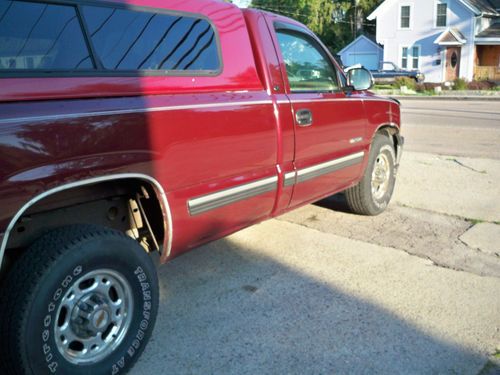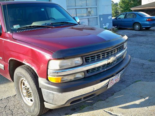2000 Silverado 2wd regular cab pick up. Good old work truck, 172000 miles but still runs strong, just passed Mass inspection, check engine light isn't on, no major mechanical issues, adult owned and driven never abused, exterior has some paint blisters around the rear wheel openings but no rot, right front fender is dented right door has a scratch just below the window, The entire exterior has minor scratches consistent with a 14 year old vehicle. Alloy wheels need to be polished out, tires are 50% or so. Just had a serpentine belt and tensioner pulley last week, u-joints and mid ship hanger bearing replaced last spring. Air blows cold(fan doesn't work on hi) Radio ,power windows,power mirrors,power door locks all work as they should. I have never used the CD player or the cruise control so I don't know how they work. The anit-lock brakes were acting up so I removed the fuse, Interior needs cleaning and the drivers seat is starting to sag a little. Clear coat is starting to peel off the cap, the back window for the cap is off, it will need some pop riveting and then it could be re-installed, I don't have any hydraulic cylinders for it. There are some 1" holes in the bed where we had a fifth wheel hitch mounted years ago, Truck is eguiped with a reciever hitch, brake controller and trailer wiring. All in All this truck would be a good work truck for a contractor, landscaper etc