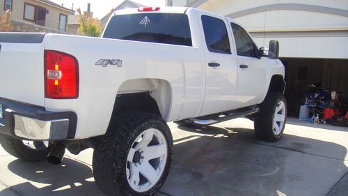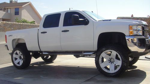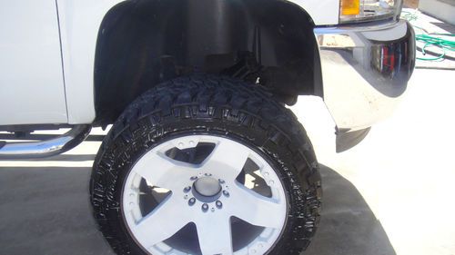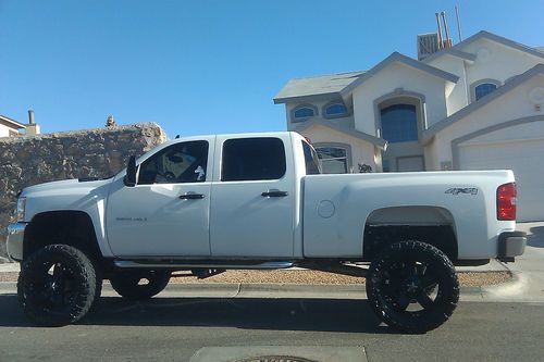 This silverado has 8inch suspention lift, with leveling kit plus tortion bars. It has 24by12 inch rockstars with 38 Nitto Trail Grapplers M/T with about 90% thread. Has flow masters, and flashpaq superchip. It is white, with grey and black cloth interior. Rockstars have been painted with white plasti dip and can easily be turned back into original black, your choice. Air bags were deployed due to front bumper crash, very low miles, everything works well and runs perfect. I just upgrated to 38 inch wheels and they do scrape very little in full turn, but you still have space for body lift if needed. Its located in El Paso TX and local pick up only.